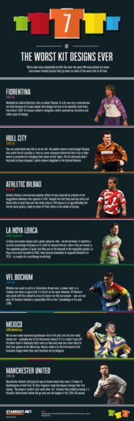 We’ve seen some horror kits over the years so the guys at Stand-Out decided to come up with this cool infographic of the 7 worst football kits of all time.
