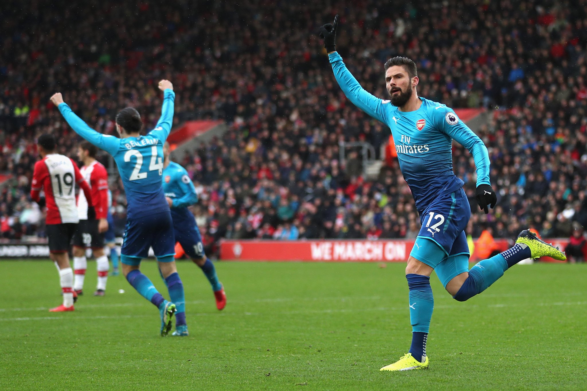 Olivier Giroud came off the bench to rescue Arsenal with a late equaliser to earn a 1-1 draw with Southampton at St Mary’s this afternoon.
