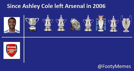 Ashley Cole Taunts Arsenal Fans On Twitter
