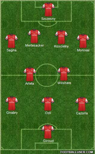 Mikel Arteta and Jack Wilshere should start in the centre of midfield with Aaron Ramsey still out with a thigh injury, although Mathieu Flamini is also pushing for a start.