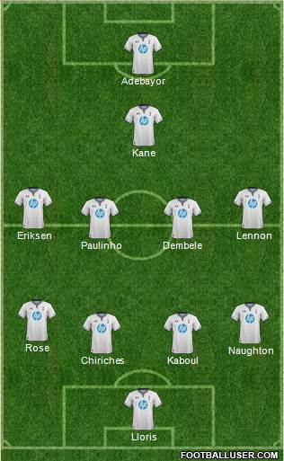 Tim Sherwood may opt to stick with the majority of the eleven that beat Fulham 3-1 last weekend. Kyle Walker is still out with a pelvic injury so Kyle Naughton will continue at right-back but Vlad Chiriches could come back in to partner Younes Kaboul in the centre of defence with Jan Vertonghen and Michael Dawson out.