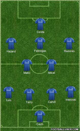 Attack: With Fabregas deployed further forward we could see Oscar rested despite his two-goal display at Swansea, while Ramires may also come in for Willian to give them even more protection to combat the dangerous Raheem Sterling down that side. Eden Hazard and Diego Costa are almost certain to keep their places in the team.